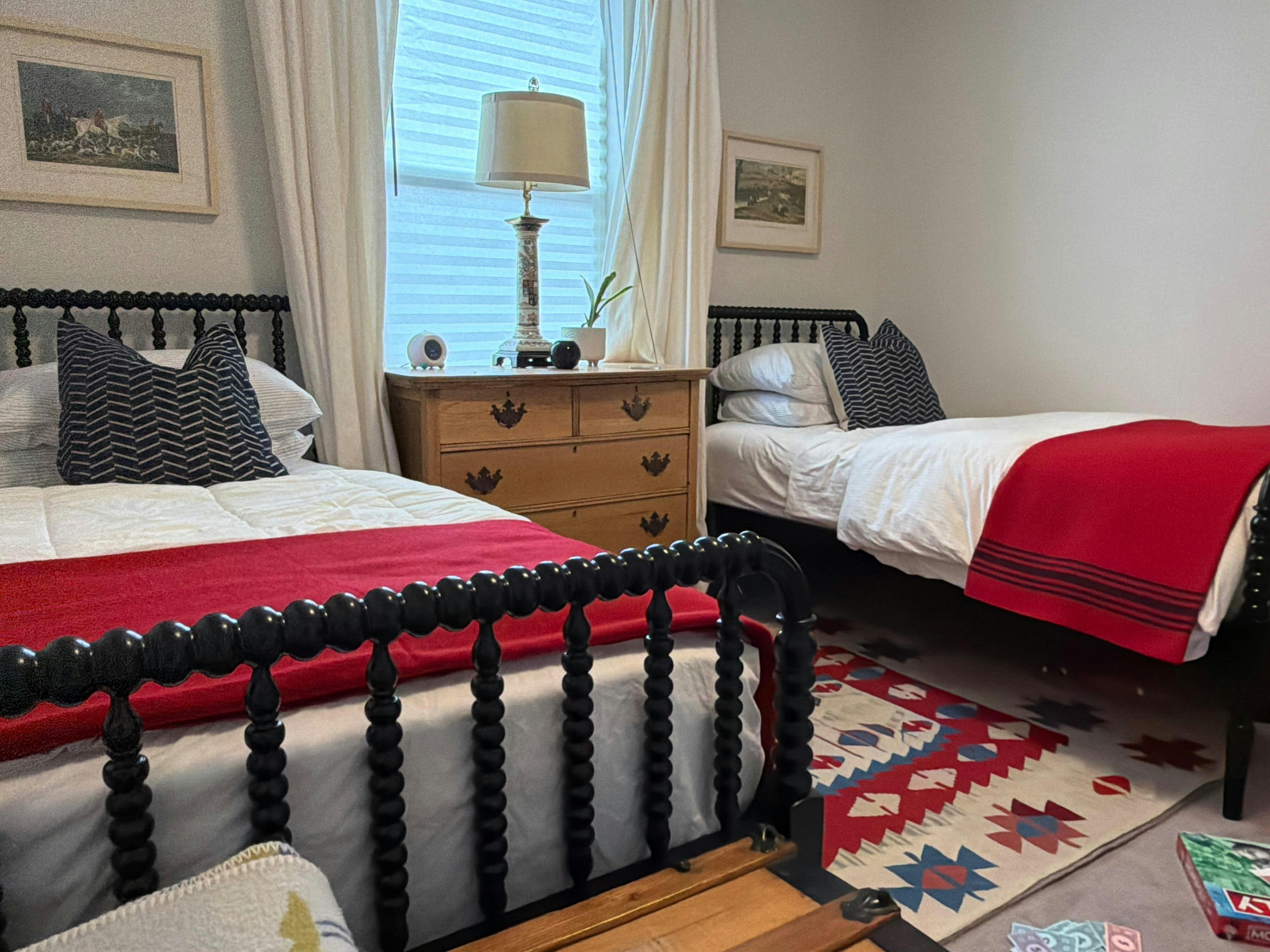 Navy-Striped Red Wool Blanket - 70% Wool/30% Synthetic